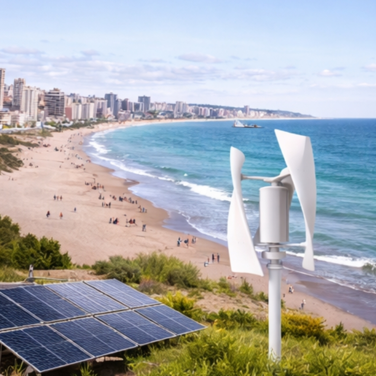 Aerogenerador eolico vertical diseñado para generar energia en lugares donde predominan fuertes vientos, como zonas costeras, areas montañosas, cercanias de lagos o regiones como la Patagonia. Con potencia nominal de 1000W a 24V, arranca desde 2,5 m/s y alcanza su rendimiento optimo a 11 m/s, soportando hasta 45 m/s. Incluye 3 palas de aleacion de aluminio, freno electromagnetico y todos los componentes necesarios para un sistema completo con banco de baterias de 24V. Por su diseño vertical, es menos eficiente en zonas de viento bajo o irregular. En esos casos, se recomienda optar por aerogeneradores de eje horizontal, que son mas eficientes y productivos en condiciones de viento moderado o bajo. No incluye torre debido a las limitaciones de envio, pero te brindamos asesoramiento para que puedas fabricarla de forma simple en destino. Todos los equipos incluyen una brida de conexion con agujeros, lista para soldar a un caño de acero galvanizado de 2 pulgadas (60,3 mm) con espesor de 4 mm. Estos caños vienen en tramos estandar de 6,40 m. Solo hay que soldar la brida, realizar 4 escuadras de refuerzo y montar sobre base firme.
