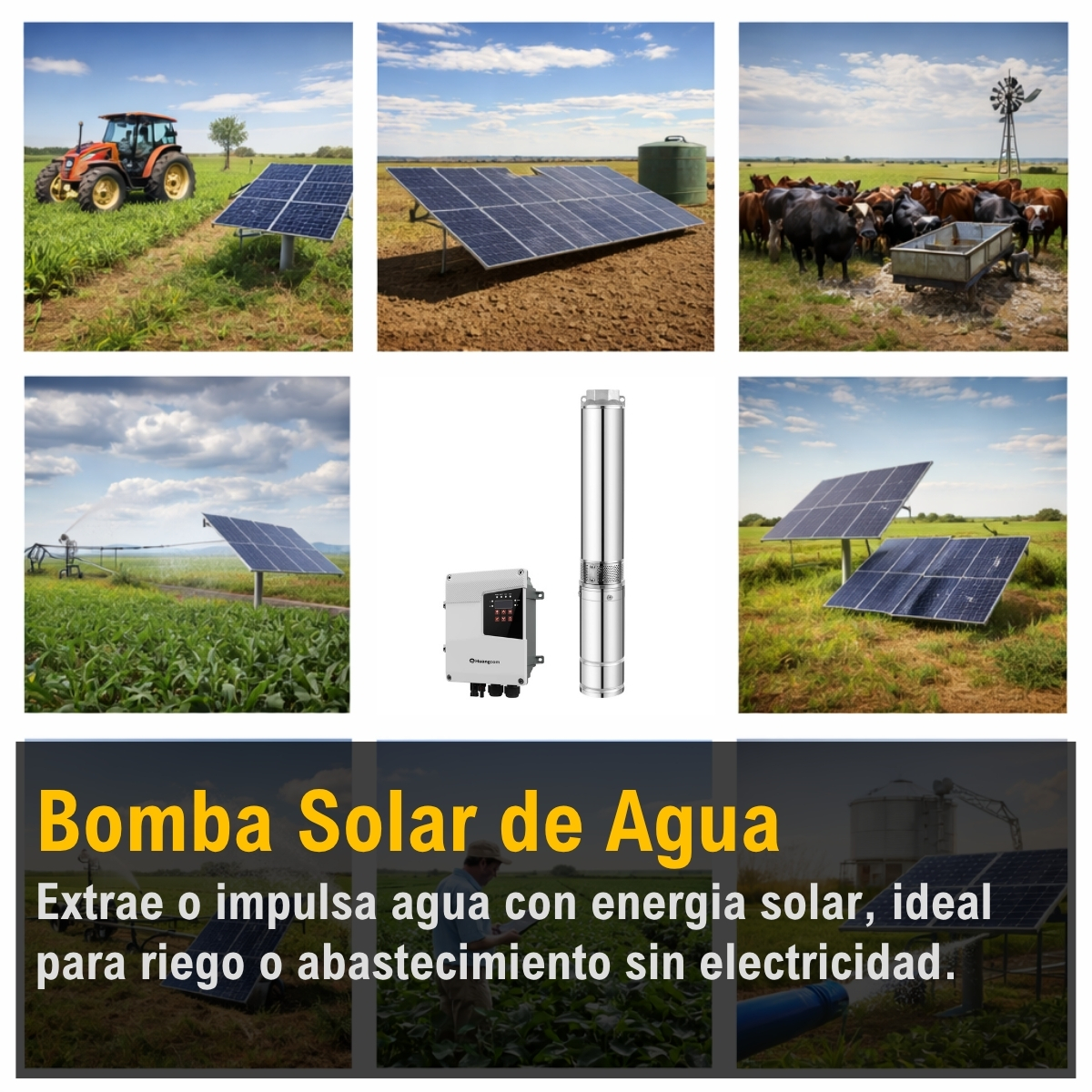 Bomba solar sumergible centrifuga de 1500W y 110V, diseñada para extraer agua de pozos profundos hasta 135 metros con gran eficiencia. Con un caudal de hasta 6000 litros por hora, es ideal para riego, abastecimiento en zonas rurales o sistemas de agua autónomos. Su diseño robusto y construcción en acero inoxidable garantizan larga duracion incluso en condiciones exigentes. Incluye controlador solar MPPT que optimiza el rendimiento desde los paneles, sensores de proteccion y arranque suave. El motor sin escobillas (brushless) asegura un funcionamiento silencioso, estable y de bajo mantenimiento. Puede conectarse con 10 paneles solares de 180W27V en configuracion serie-paralelo para alcanzar su potencia ideal y asegurar buen rendimiento aun en dias parcialmente nublados.