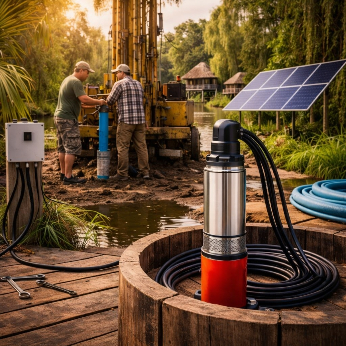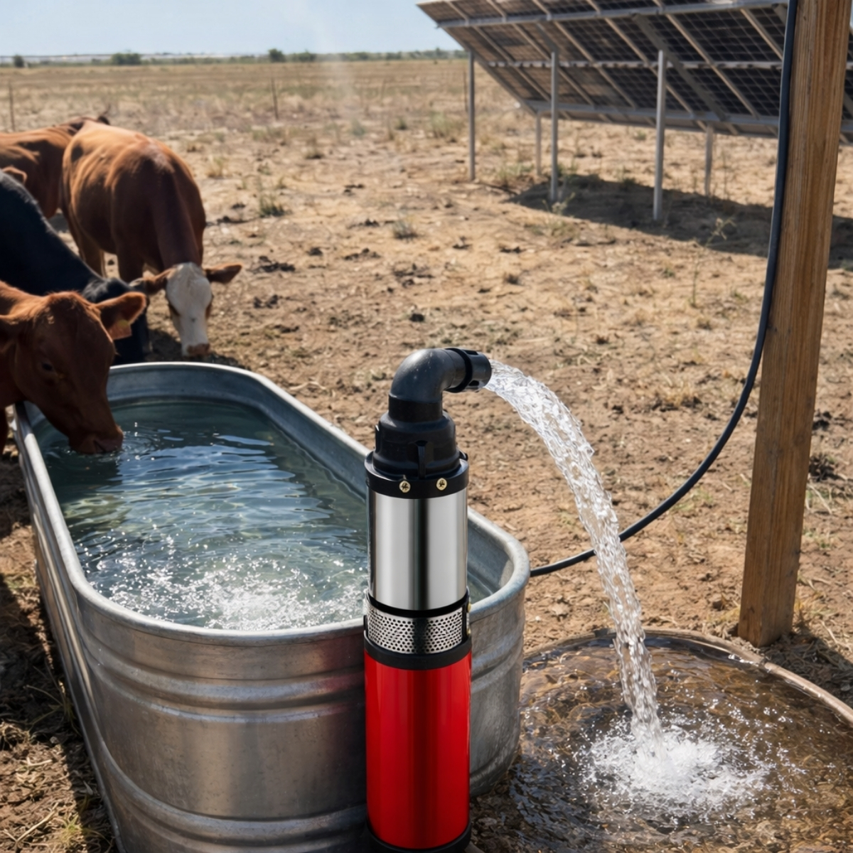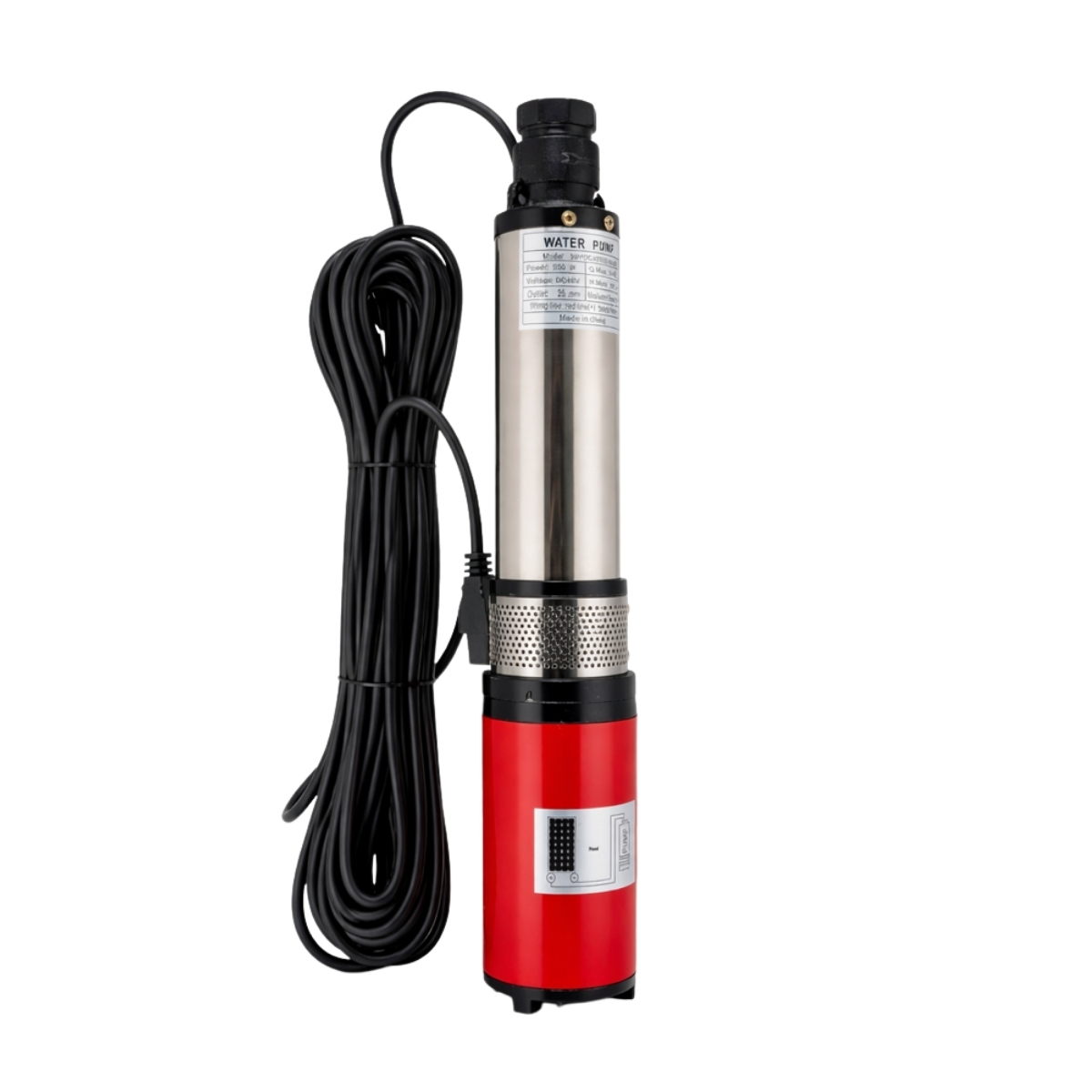 Bomba solar sumergible de 250W a 24V especialmente diseñada para pozos de hasta 30 metros de profundidad. Permite extraer hasta 4000 litros por hora, ideal para sistemas de riego, reservas domiciliarias, uso ganadero o instalaciones rurales sin acceso a red electrica. Gracias a su motor DC con escobillas, puede conectarse directamente a baterias o paneles solares en paralelo sin necesidad de controlador. Su diseño sumergible centrifugo garantiza alto caudal en columnas de agua medias. Requiere minimo 2 paneles solares de 180W 27V en paralelo para operar correctamente. Construida con materiales resistentes a la corrosion, ideal para uso continuo. No apta para agua con particulas solidas o abrasivas.