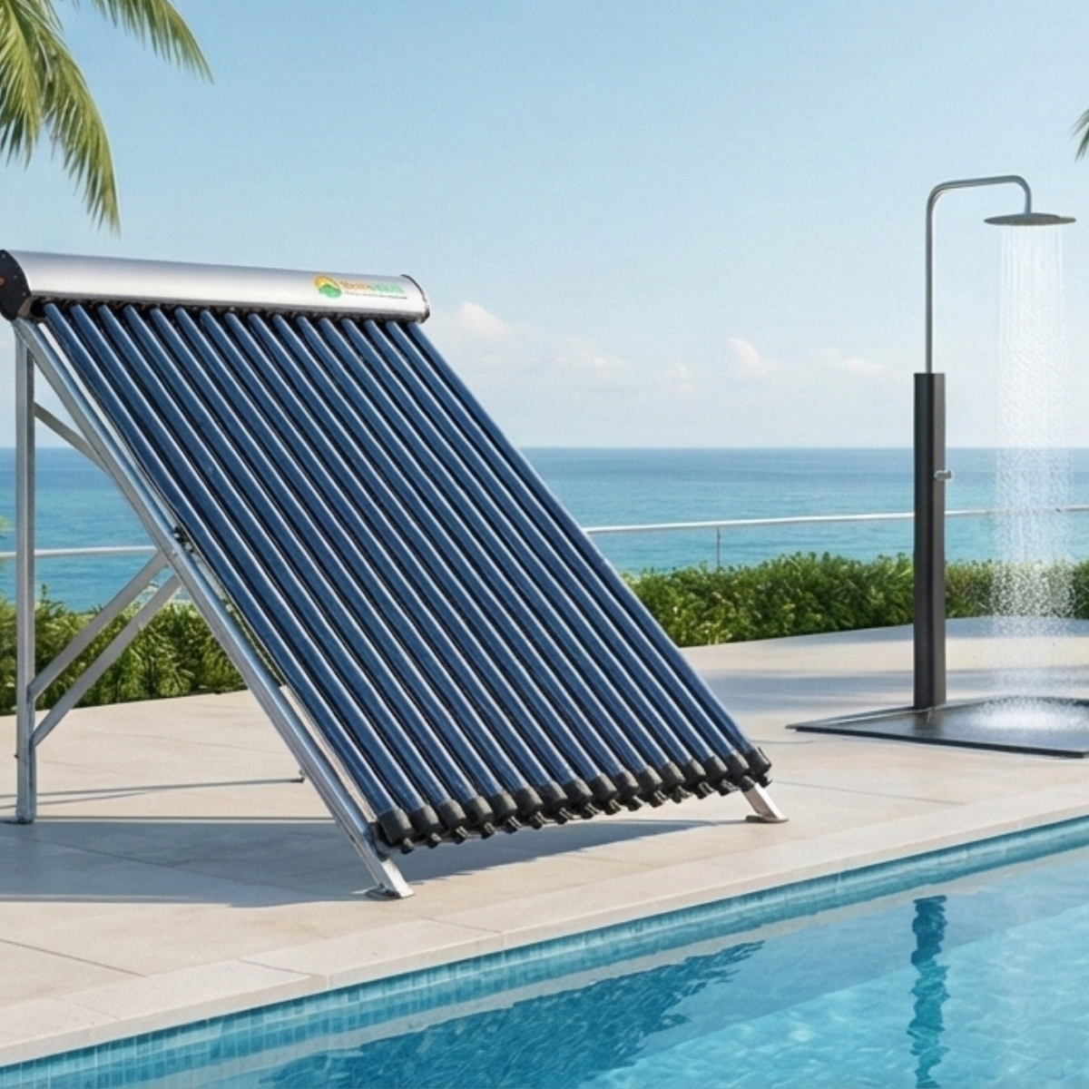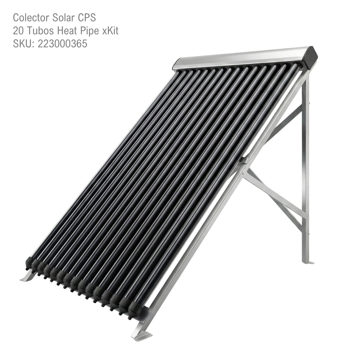 Colector solar **CPS de 20 tubos Heat Pipe**, disenado para sistemas solares presurizados y apto tambien para **climatizacion de piscinas**. Utiliza tecnologia Heat Pipe para una transferencia de calor eficiente, rapida y estable incluso en dias frios o nublados.