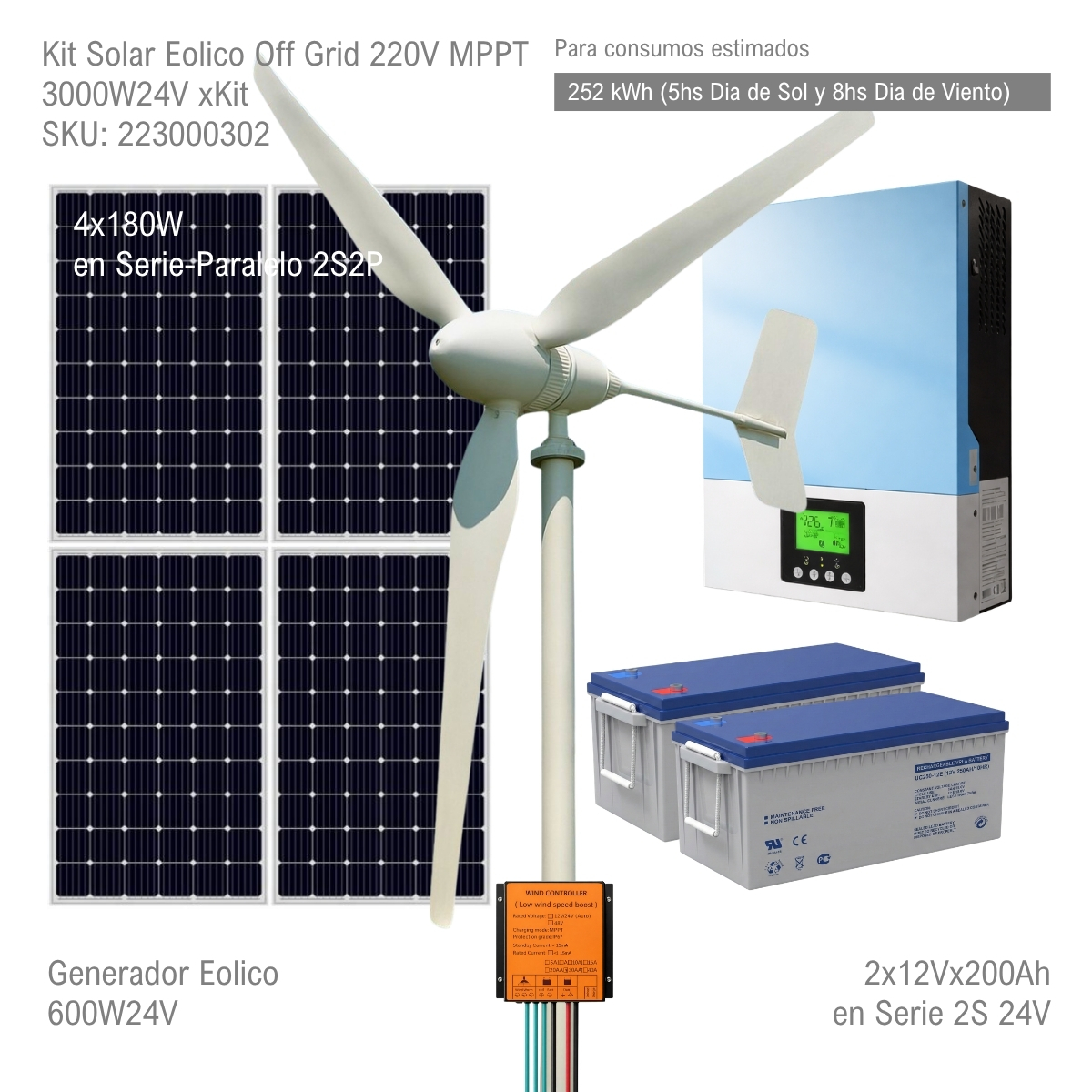 * Kit Generacion Hibrida Solar Eolica 3000W 24V